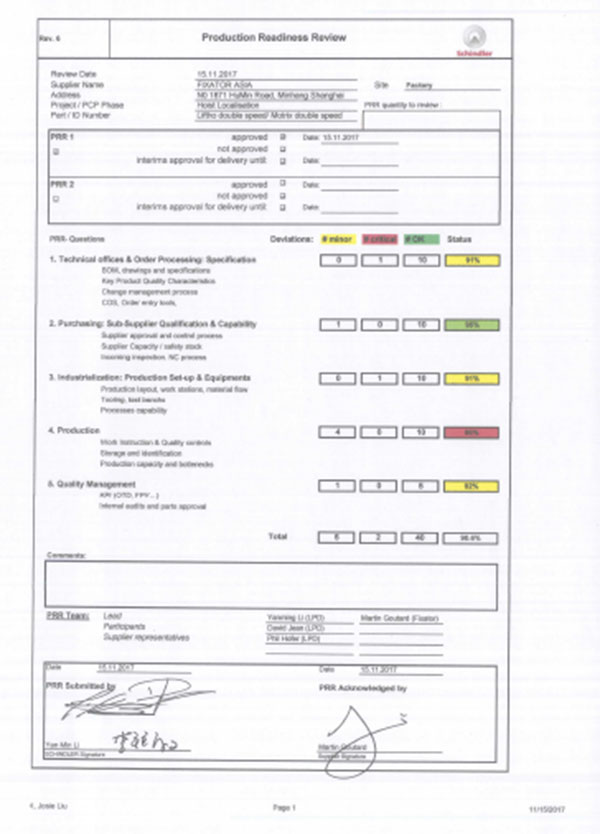 法適達完成與迅達電梯初步合作的審核